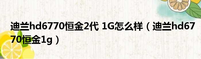 迪兰hd6770恒金2代 1G怎么样,迪兰hd6770恒金1g很多人还不知道,今天乐天来为大家解答以上问题,现在让我们一起来看看吧!