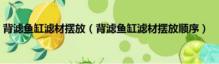 背滤鱼缸滤材摆放(背滤鱼缸滤材摆放顺序)