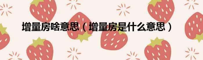 大家好,甜甜来为大家解答以上问题,增量房啥意思,增量房是什么意思很多人还不知道,现在让我们一起来看看吧!