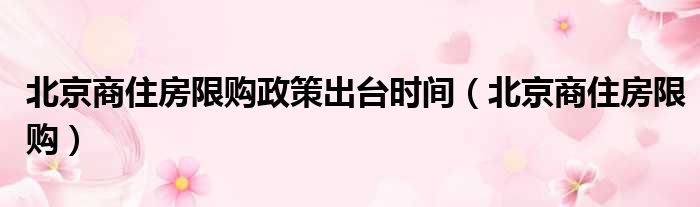 大家好,甜甜来为大家解答以上问题,北京商住房限购政策出台时间,北京商住房限购很多人还不知道,现在让我们一起来看看吧!