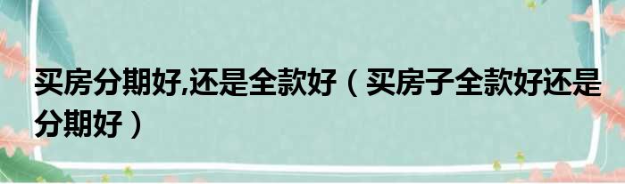 买房分期好,还是全款好(买房子全款好还是分期好)