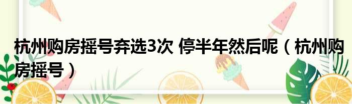 杭州购房摇号弃选3次 停半年然后呢(杭州购房摇号)