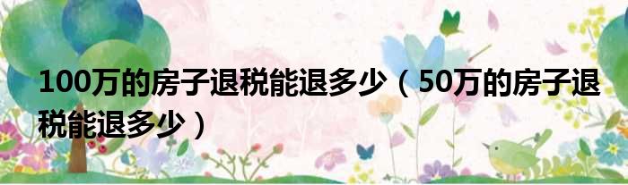 100万的房子退税能退多少(50万的房子退税能退多少)