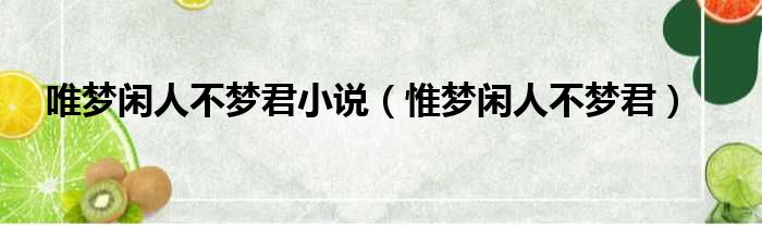 唯梦闲人不梦君小说(惟梦闲人不梦君)