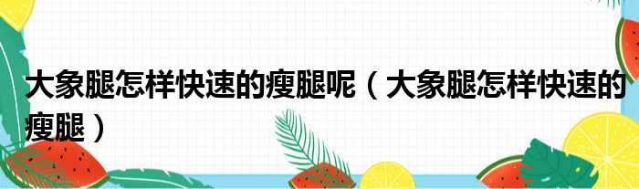 大象腿怎样快速的瘦腿呢(大象腿怎样快速的瘦腿)
