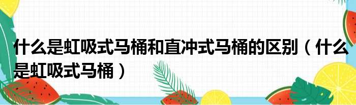什么是虹吸式马桶和直冲式马桶的区别(什么是虹吸式马桶)
