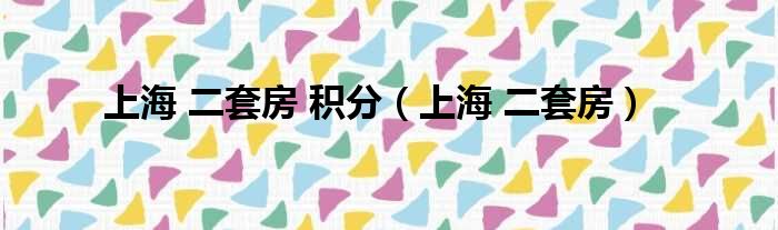 上海 二套房 积分(上海 二套房)