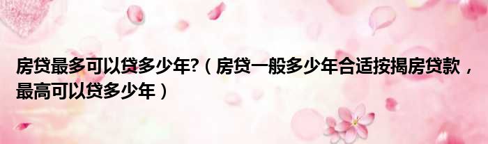 房贷最多可以贷多少年?(房贷一般多少年合适按揭房贷款,最高可以贷多少年)