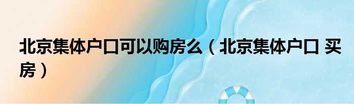 北京集体户口可以购房么(北京集体户口 买房)