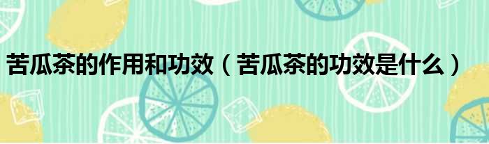 苦瓜茶的作用和功效(苦瓜茶的功效是什么)