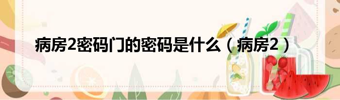 病房2密码门的密码是什么,病房2很多人还不知道,今天乐天来为大家解答以上问题,现在让我们一起来看看吧!