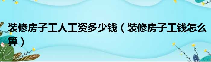 装修房子工人工资多少钱(装修房子工钱怎么箅)