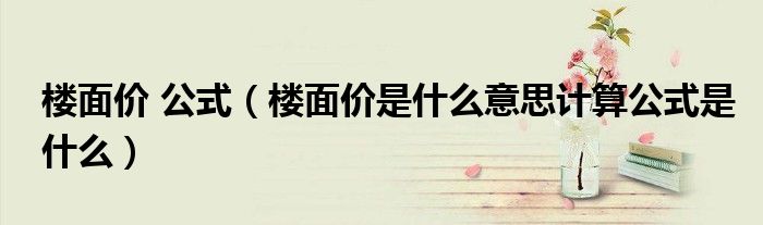 楼面价 公式(楼面价是什么意思计算公式是什么)