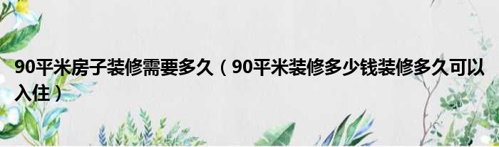 90平米房子装修需要多久(90平米装修多少钱装修多久可以入住)