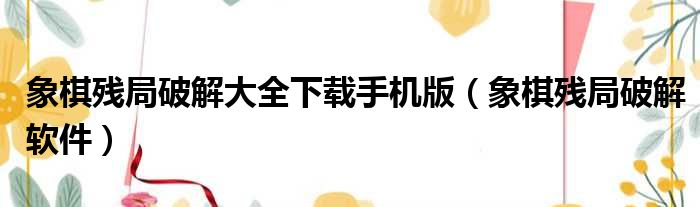 象棋残局破解大全下载手机版(象棋残局破解软件)