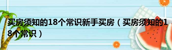买房须知的18个常识新手买房(买房须知的18个常识)