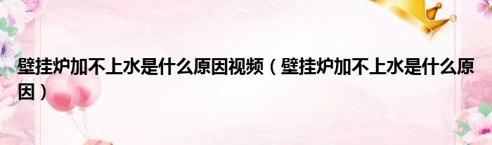壁挂炉加不上水是什么原因视频(壁挂炉加不上水是什么原因)