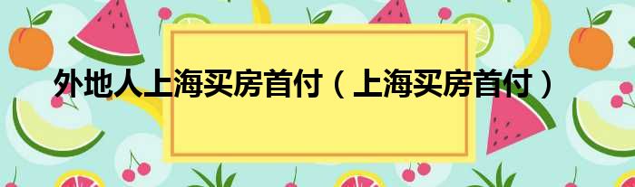 大家好,甜甜来为大家解答以上问题,外地人上海买房首付,上海买房首付很多人还不知道,现在让我们一起来看看吧!