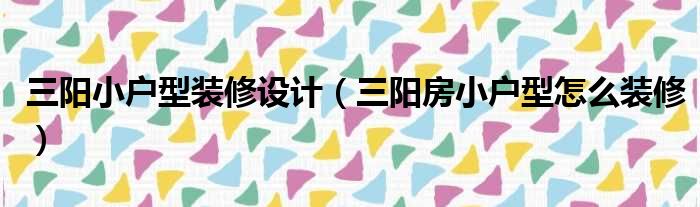 三阳小户型装修设计(三阳房小户型怎么装修)