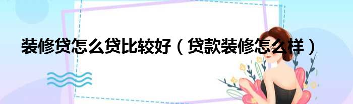 装修贷怎么贷比较好(贷款装修怎么样)