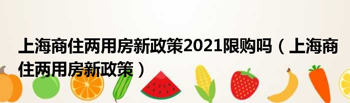 上海商住两用房新政策2021限购吗(上海商住两用房新政策)