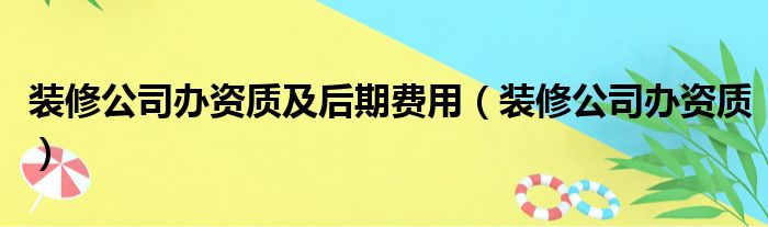 大家好,甜甜来为大家解答以上问题,装修公司办资质及后期费用,装修公司办资质很多人还不知道,现在让我们一起来看看吧!