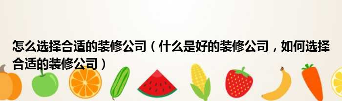 怎么选择合适的装修公司(什么是好的装修公司,如何选择合适的装修公司)