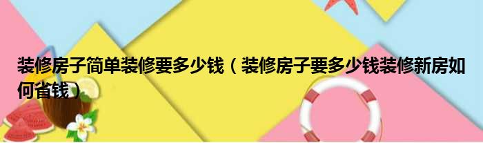 装修房子简单装修要多少钱(装修房子要多少钱装修新房如何省钱)