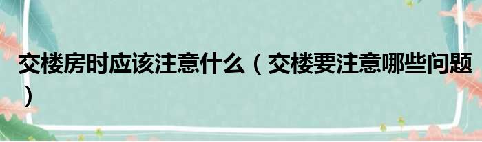 交楼房时应该注意什么(交楼要注意哪些问题)