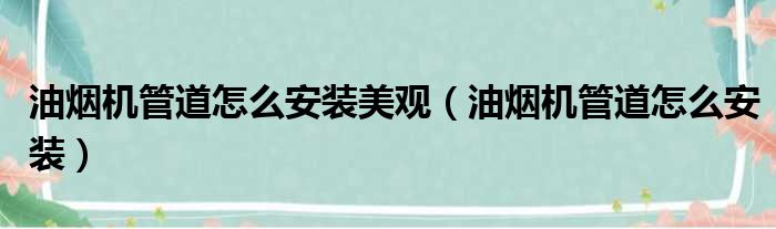 油烟机管道怎么安装美观(油烟机管道怎么安装)