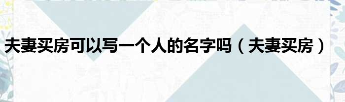 夫妻买房可以写一个人的名字吗(夫妻买房)