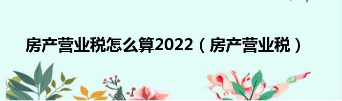 大家好,甜甜来为大家解答以上问题,房产营业税怎么算2022,房产营业税很多人还不知道,现在让我们一起来看看吧!