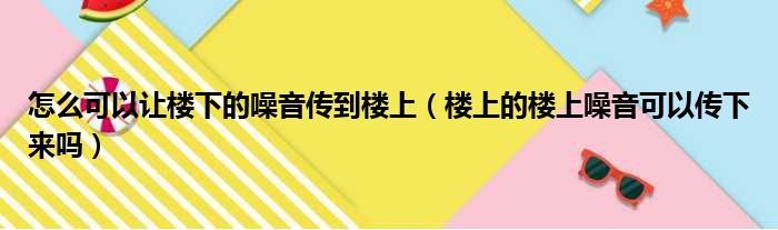 怎么可以让楼下的噪音传到楼上(楼上的楼上噪音可以传下来吗)
