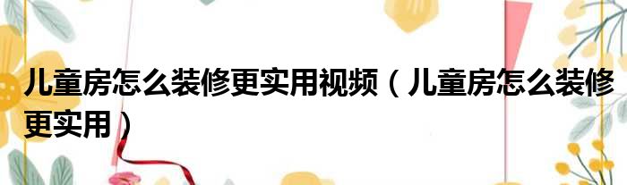 儿童房怎么装修更实用视频(儿童房怎么装修更实用)