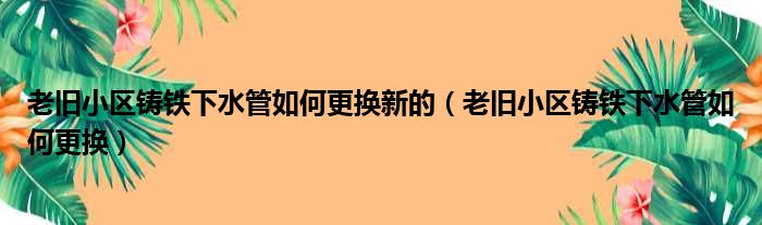 老旧小区铸铁下水管如何更换新的(老旧小区铸铁下水管如何更换)