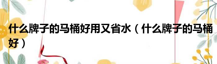 什么牌子的马桶好用又省水(什么牌子的马桶好)