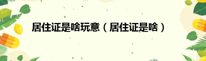 居住证是啥玩意(居住证是啥)