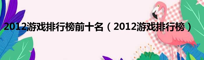 2012游戏排行榜前十名,2012游戏排行榜很多人还不知道,今天乐天来为大家解答以上问题,现在让我们一起来看看吧!