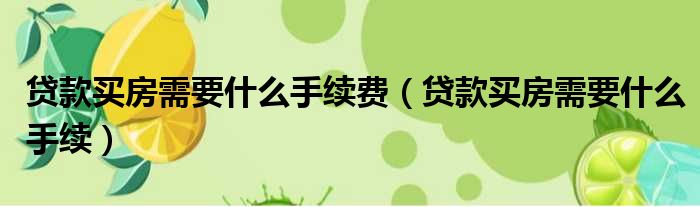 贷款买房需要什么手续费(贷款买房需要什么手续)