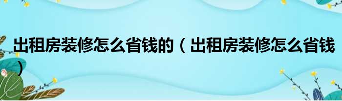 出租房装修怎么省钱的(出租房装修怎么省钱)