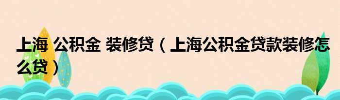 上海 公积金 装修贷(上海公积金贷款装修怎么贷)