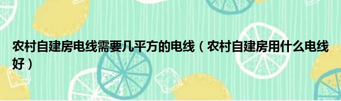 农村自建房电线需要几平方的电线(农村自建房用什么电线好)
