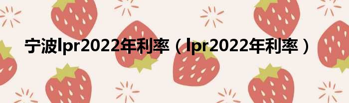 宁波lpr2022年利率(lpr2022年利率)