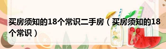 买房须知的18个常识二手房(买房须知的18个常识)