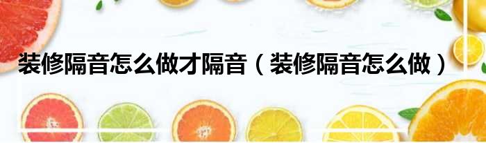 装修隔音怎么做才隔音(装修隔音怎么做)