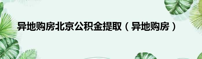 大家好,甜甜来为大家解答以上问题,异地购房北京公积金提取,异地购房很多人还不知道,现在让我们一起来看看吧!