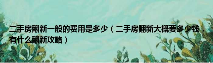 二手房翻新一般的费用是多少(二手房翻新大概要多少钱,有什么翻新攻略)