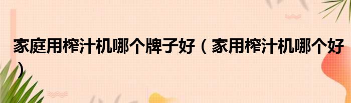 家庭用榨汁机哪个牌子好(家用榨汁机哪个好)