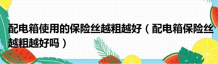 配电箱使用的保险丝越粗越好(配电箱保险丝越粗越好吗)