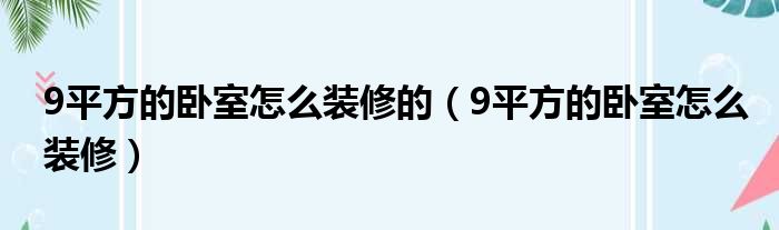 9平方的卧室怎么装修的(9平方的卧室怎么装修)